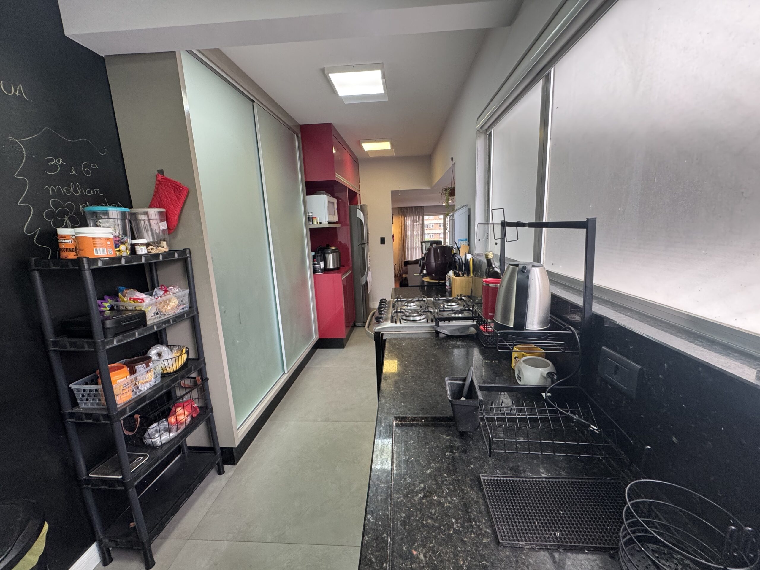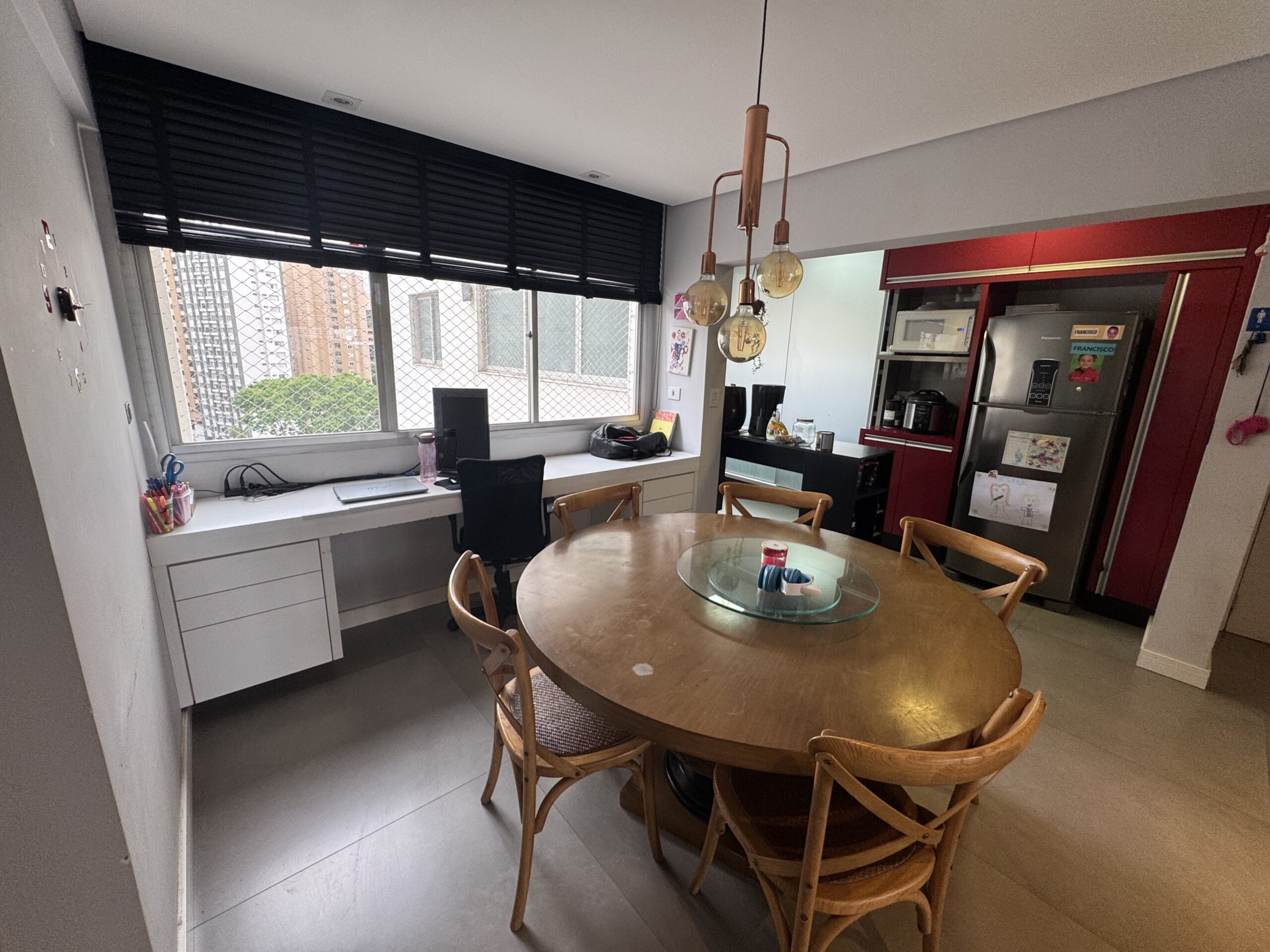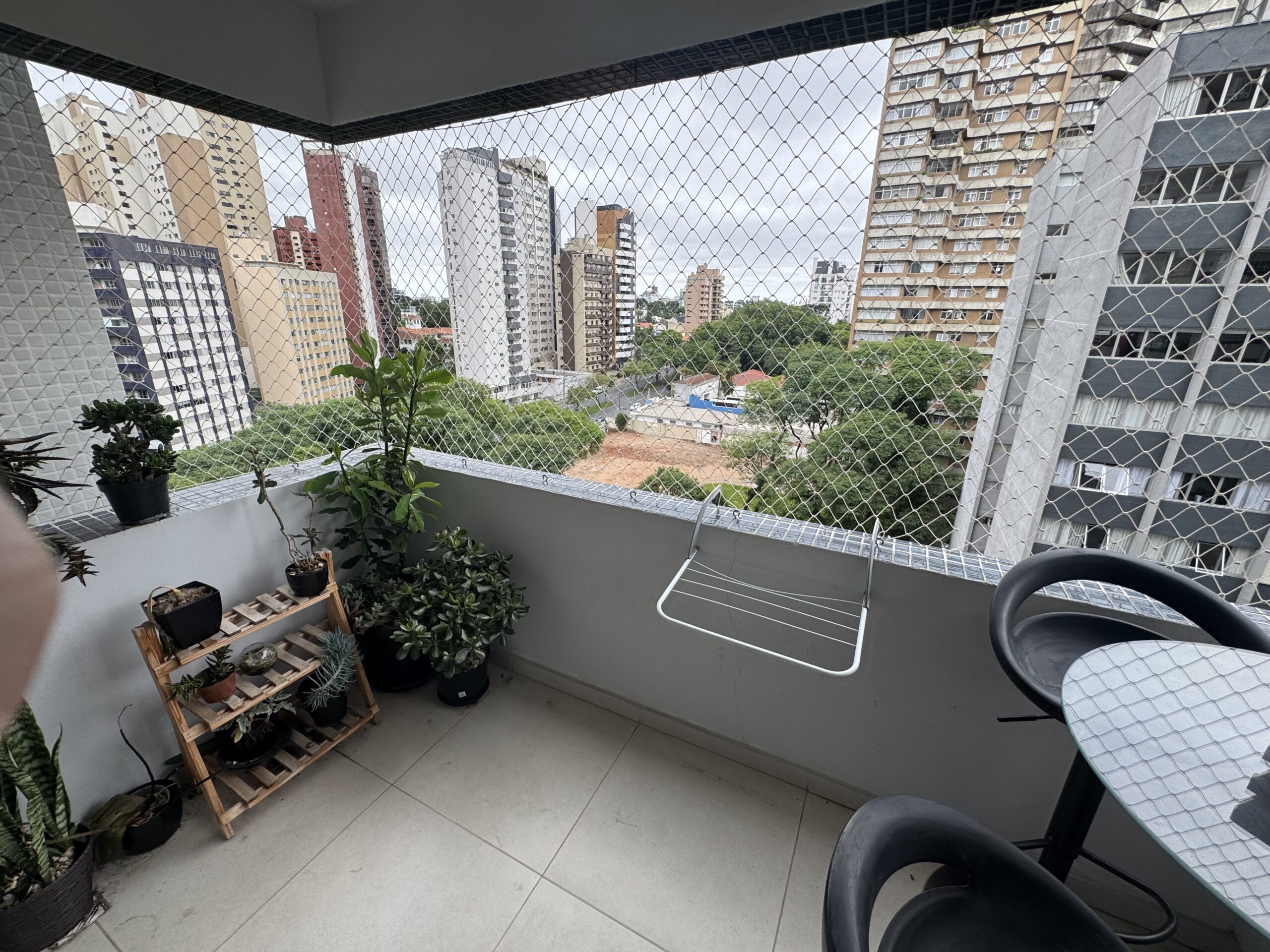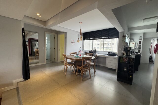 O apartamento, tem 98 m² privativos, face oeste, e acesso por senha exclusiva. Foi recentemente reformado e conta com: