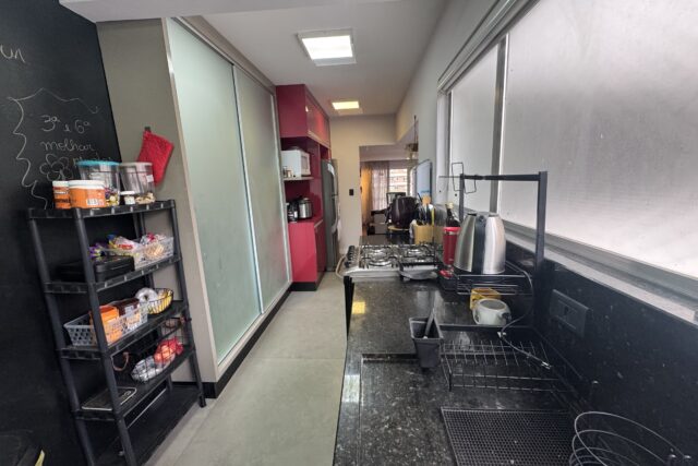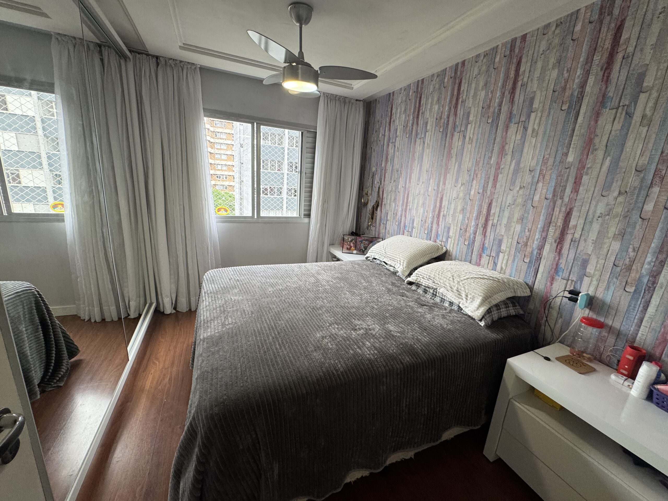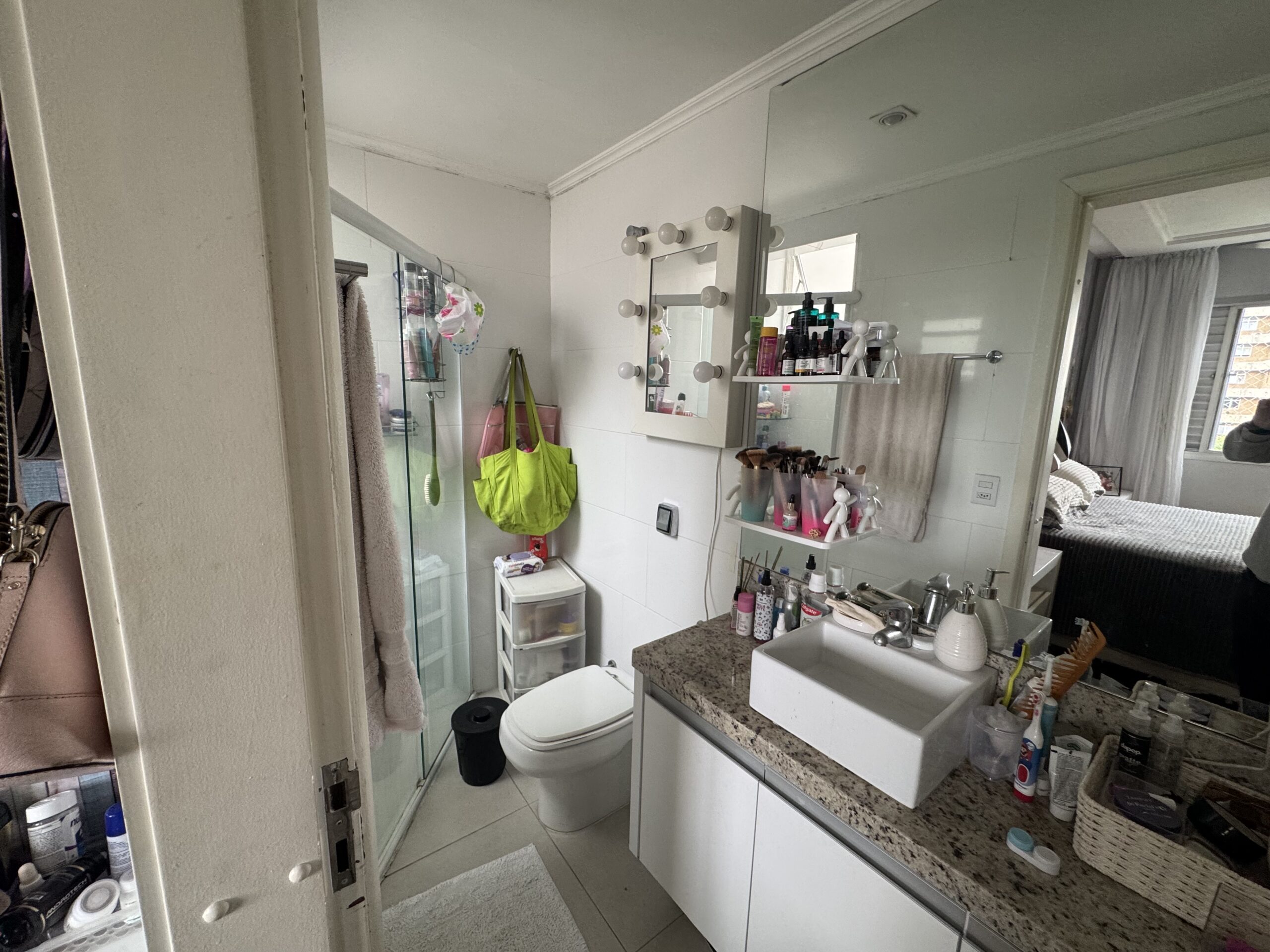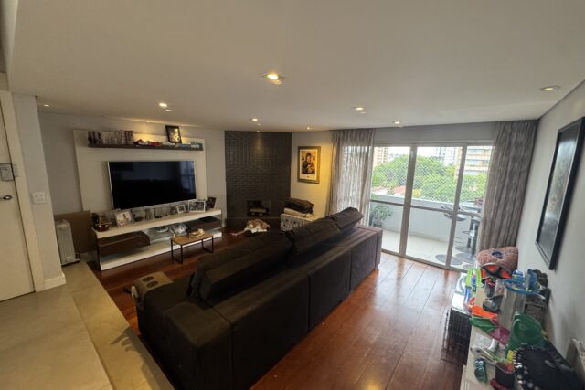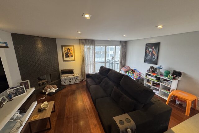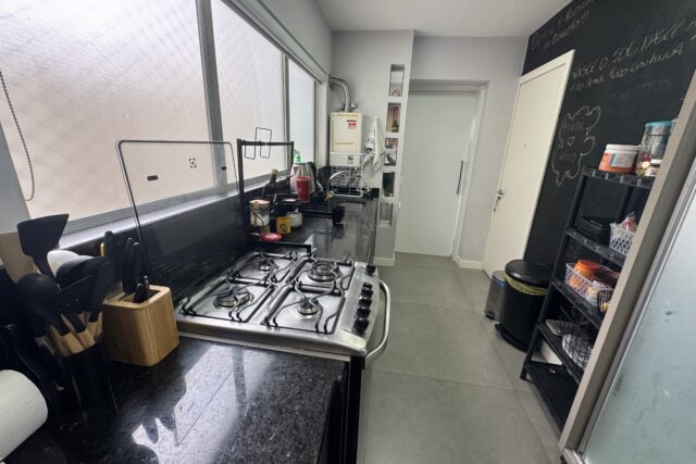 O apartamento, tem 98 m² privativos, face oeste, e acesso por senha exclusiva. Foi recentemente reformado e conta com: