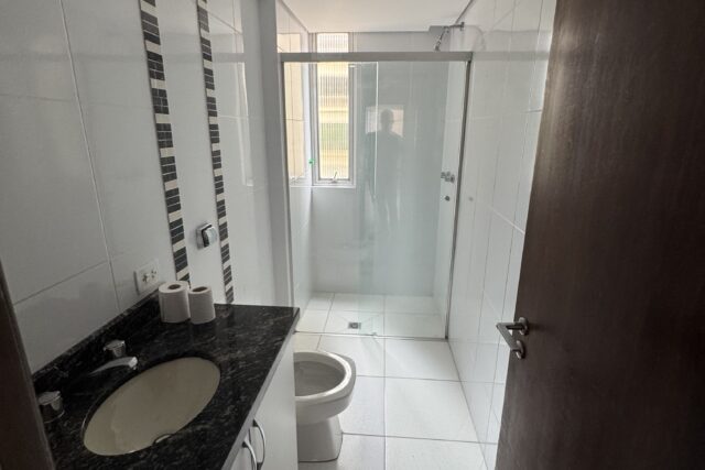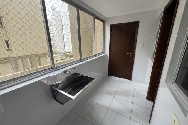 O Apartamento possui 119 m2 de área privativa; sendo 02 apartamentos por andar; servido por 02 elevadores – social e serviço -; composto por 01 lavabo, Sala Estar e Jantar; Cozinha, Área de Serviço com Quarto e BWC de Empregada; 03 quartos ( 1 suite ).