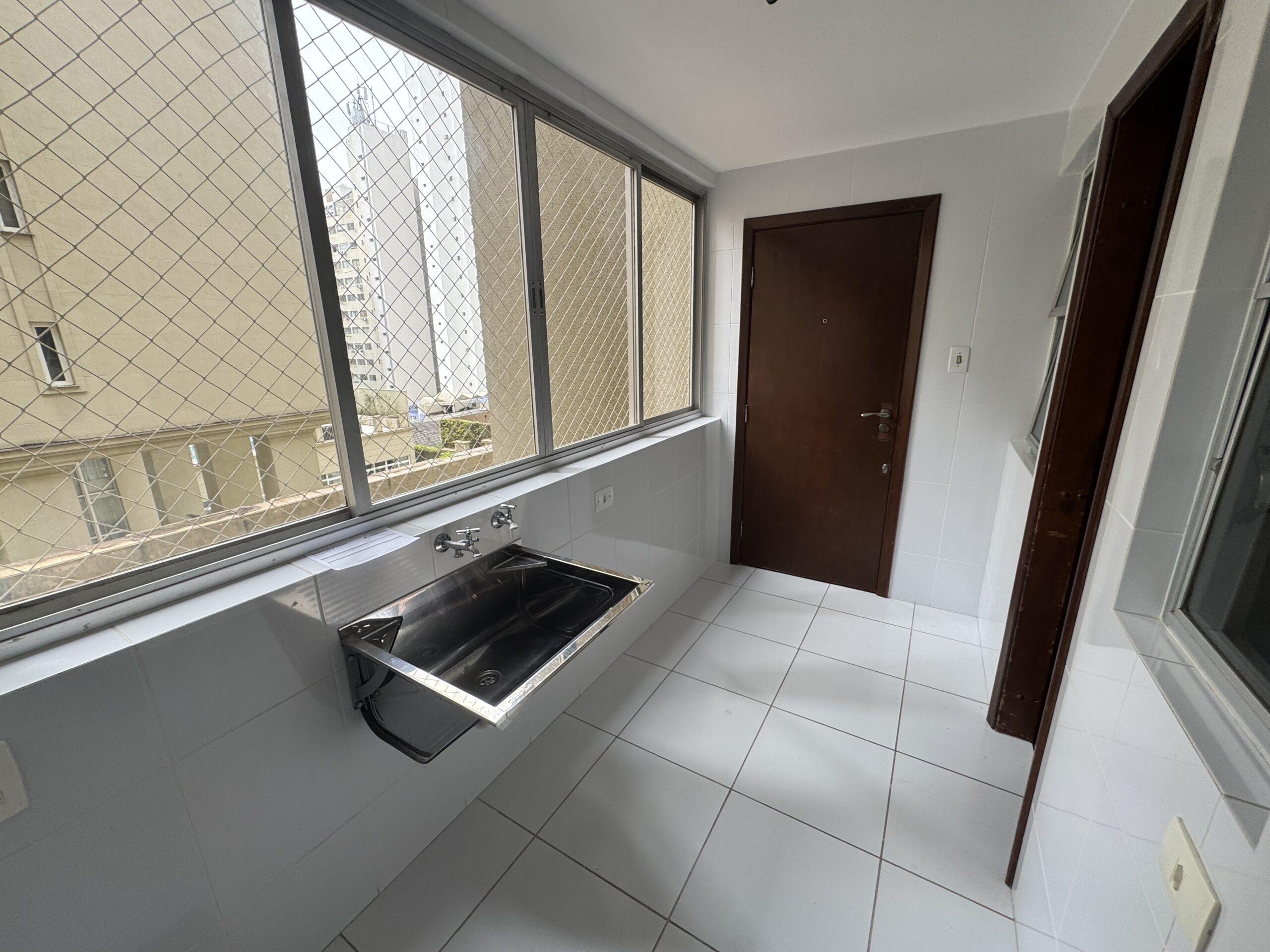 O Apartamento possui 119 m2 de área privativa; sendo 02 apartamentos por andar; servido por 02 elevadores – social e serviço -; composto por 01 lavabo, Sala Estar e Jantar; Cozinha, Área de Serviço com Quarto e BWC de Empregada; 03 quartos ( 1 suite ).